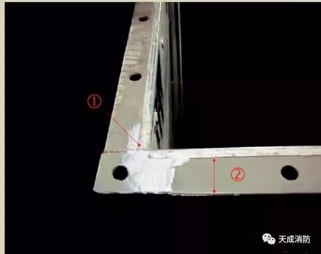 ③ 共板法蘭風管四角制作豁口應該打膠嚴密,打膠應該抹平整,不出現堆疊現象。