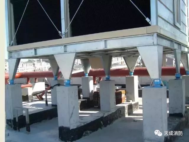 冷卻塔基礎尺寸標高、強度均應滿足要求基礎高度按管道安裝要求而定。基礎經過找平找正后安裝減振裝置,減震裝置與設備及基礎螺栓固定。