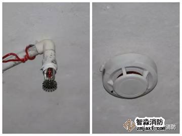 (左:簡易噴淋右:獨立感煙探測器)