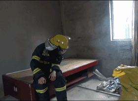 在A、B商鋪的夾層分別放置一裝有倉鼠的鐵籠。安排一名戰斗員著戰斗服戴空氣呼吸器在B商鋪夾層觀察高溫煙氣蔓延情況,并利用床單或窗簾等物品示范結繩逃生。