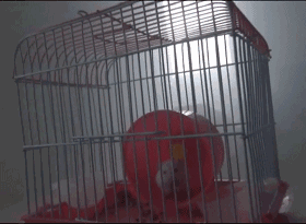 實驗畫面顯示:此時被困人員聽到獨立感煙探測器的報警聲,準備通過逃生窗逃生,倉鼠正常存活。)