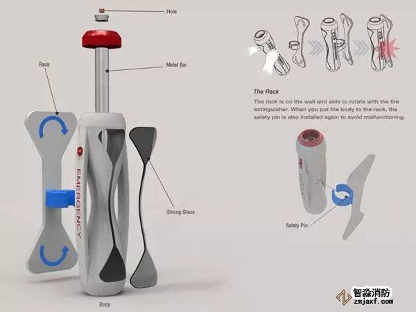 滅火器無論是在家庭還是在公共場(chǎng)所都是必不可少的物品,由于使用幾率不大,所以很少有人會(huì)注意到它。說實(shí)話,很多人見到這個(gè)東西都會(huì)緊張,怕操作錯(cuò)誤,而且現(xiàn)在的滅火器看起來確實(shí)不那么易懂。最重要的是,打開滅火器的那幾秒鐘很可能意味著生與死。那么來看看設(shè)計(jì)師們是怎么來創(chuàng)新它的吧。