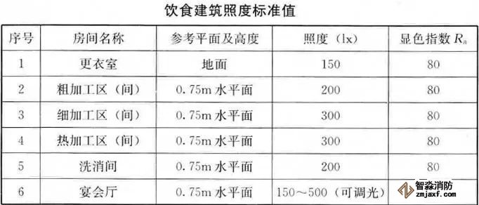 (2)小型飲食建筑的廚房區域、用餐區域,宜設置備用照明,其照度不應低于10lx;