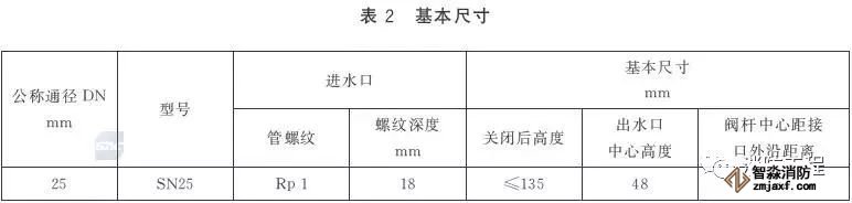室內(nèi)消火栓的基本參數(shù)見表1。