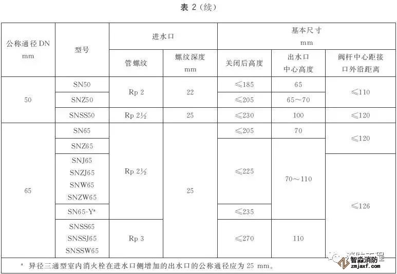 室內(nèi)消火栓的基本尺寸應符合表2的規(guī)定。尺寸公差應符合GB/T 1804—2000中V級的規(guī)定。