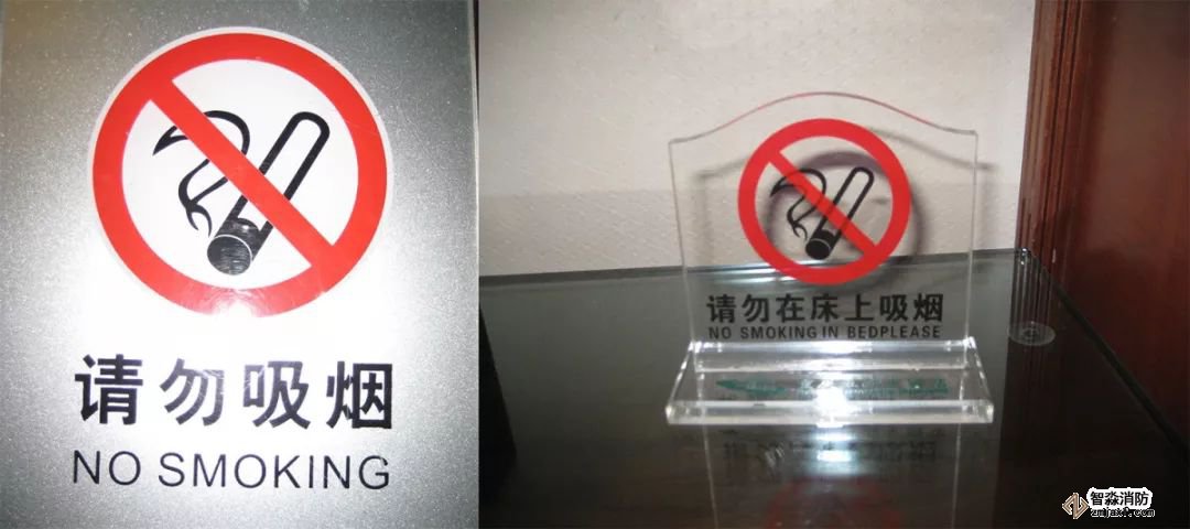 設(shè)置要求:1、公眾聚集場所應(yīng)設(shè)置禁煙標(biāo)牌;2、賓館飯店客房床頭應(yīng)設(shè)置“請勿臥床吸煙”標(biāo)牌。