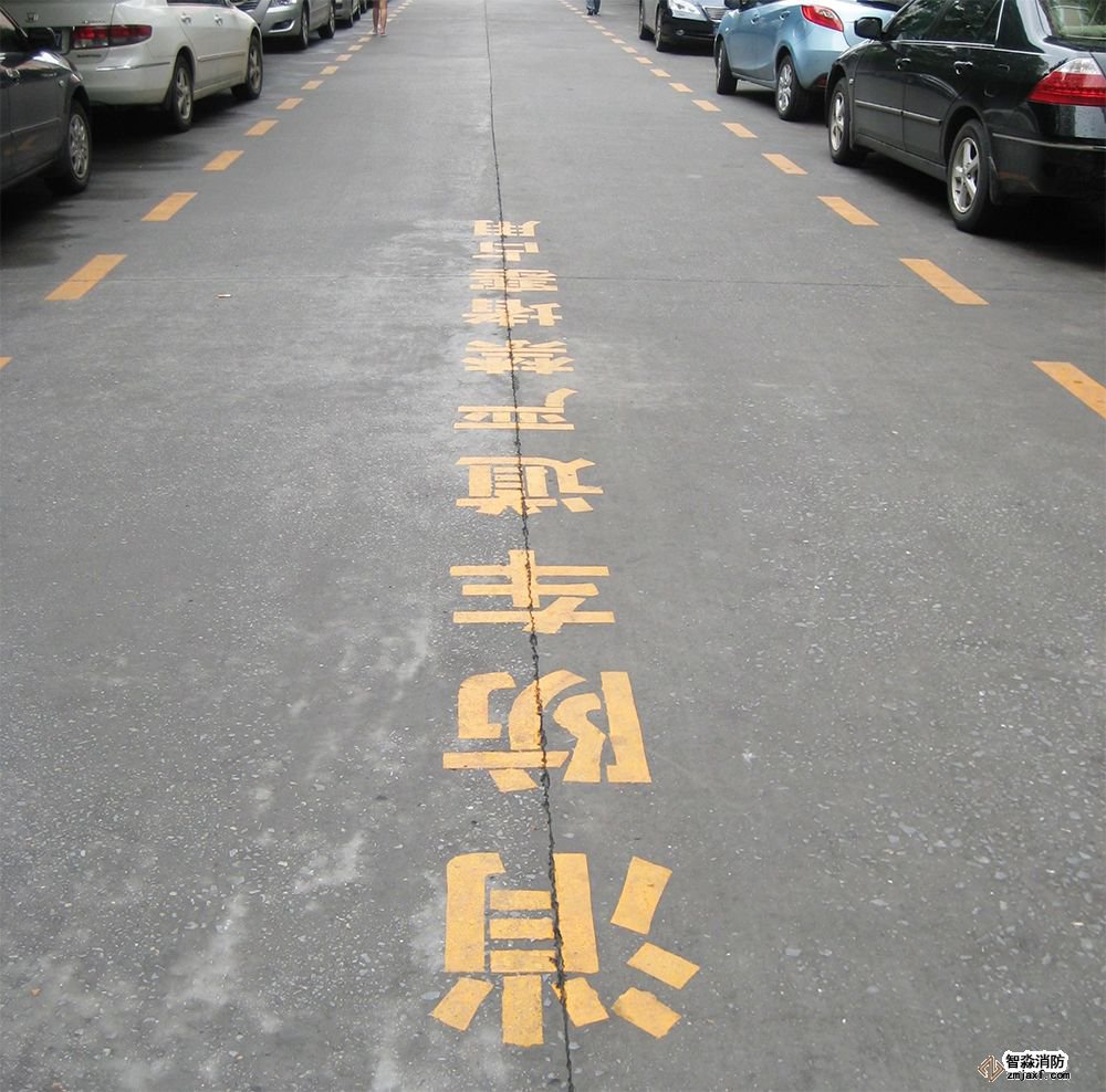 設(shè)置要求:在建筑的不同方位的車道上應(yīng)噴涂“消防車道嚴(yán)禁占用”。利用市政道路的可不噴涂。
