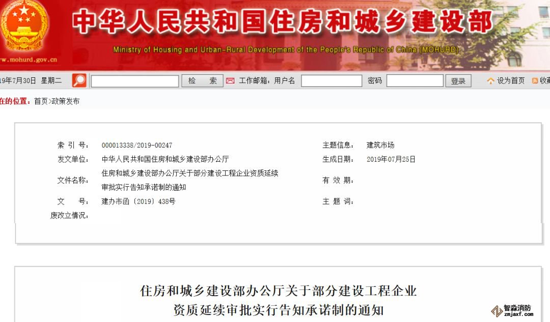 關(guān)于部分建設(shè)工程企業(yè)資質(zhì)延續(xù)審批實(shí)行告知承諾制的通知