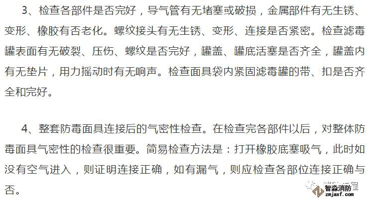 2、使用前應檢查部件和結合部的氣密性,若發(fā)生漏氣應查明原因。例如,面罩選擇不合適或佩戴不正確;橡膠主體有破損;濾毒罐(盒)破裂;面罩的部件連接松動等等。面具保持良好的氣密狀態(tài)才能使用。