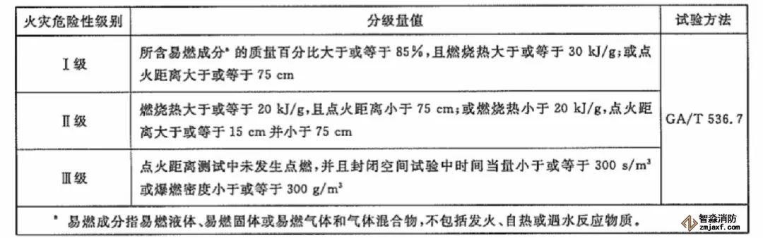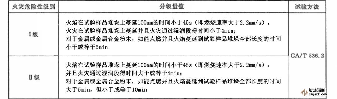 易燃固體火災危險性分級方法見下表: