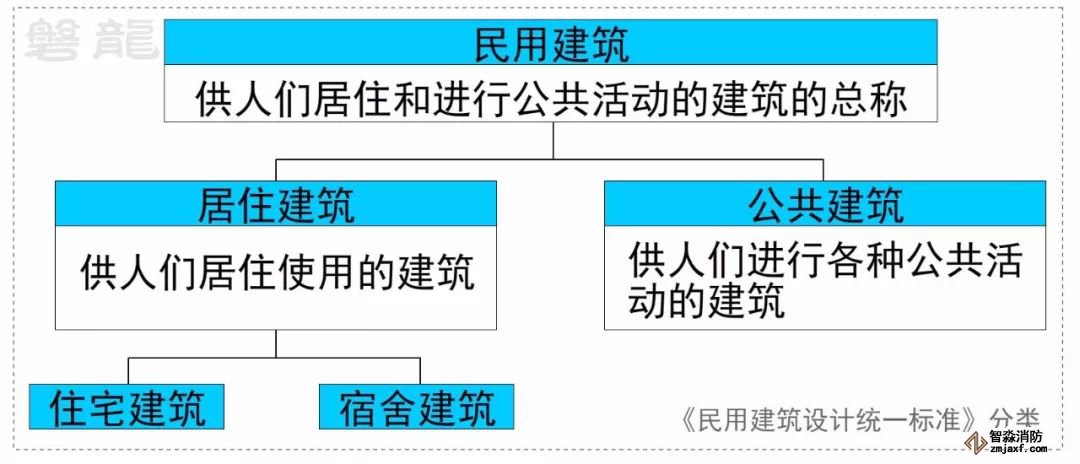 注:考慮宿舍、公寓等非住宅類居住建筑的火災(zāi)危險(xiǎn)性與公共建筑接近,因此,《建筑設(shè)計(jì)防火規(guī)范》將民用建筑分為公共建筑和住宅建筑兩大類,詳見專題:民用建筑-建筑分類!