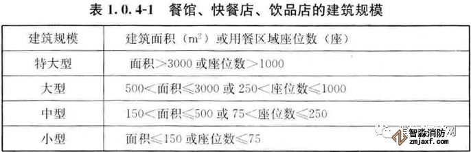 3、飲食建筑按建筑規模可分為特大型、大型、中型和小型,并應符合表1.0.4-1及表1.0.4-2的規定。
