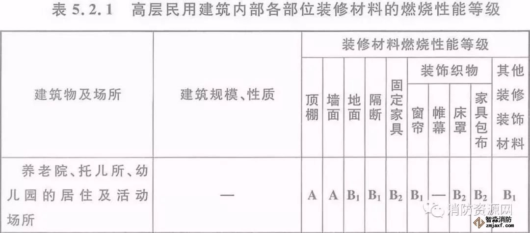 二、當設置在高層民用建筑時,內部各部位裝修材料的燃燒性能等級,不應低于《建筑內部裝修設計防火規范》5.2.1的規定。