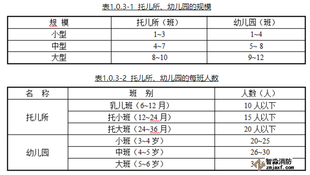 八、托兒所、幼兒園的規模應符合表1.0.3-1的規定,托兒所、幼兒園的每班人數宜符合表1.0.3-2的規定。(1.0.3