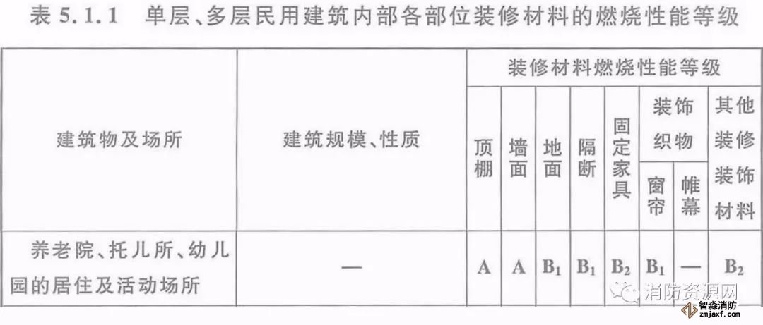 一、當設置在單層、多層民用建筑時,內部各部位裝修材料的燃燒性能等級,不應低于《建筑內部裝修設計防火規范》5.1.1的規定。