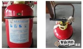①正確說明滅火器類型(看標示,推車式ABC干粉滅火器,滅A類固體B類液體C類氣體和電類火災)