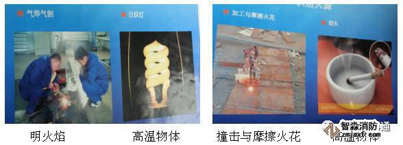答:根據(jù)圖片判別所屬火源類型:明火焰,高溫物體,電火花,撞擊與摩擦火花。 中間明亮部分為電火花,產(chǎn)生的焊渣屬于高溫物體
