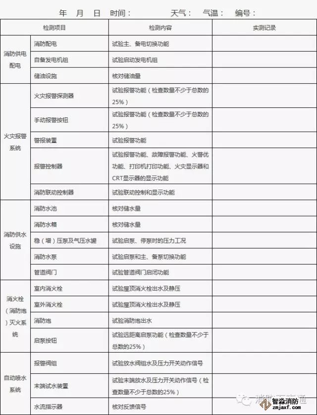 1、建筑消防設施的單項檢查應當每月至少一次,并填表。