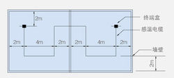 如果感溫電纜敷設在走廊,過道等長條形狀建筑物時,宜用吊線以直線方式在中間敷設。吊線應有拉緊裝置,每隔2m用固定卡具把電纜固定在吊線上。