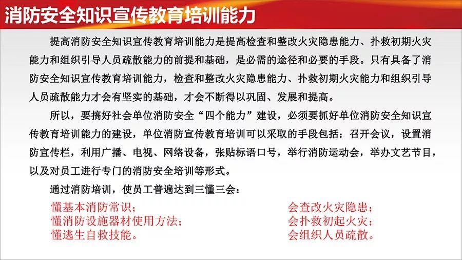 - 消防“四懂,四會(huì),四個(gè)能力”分別是什么,來(lái)看看,以備需要