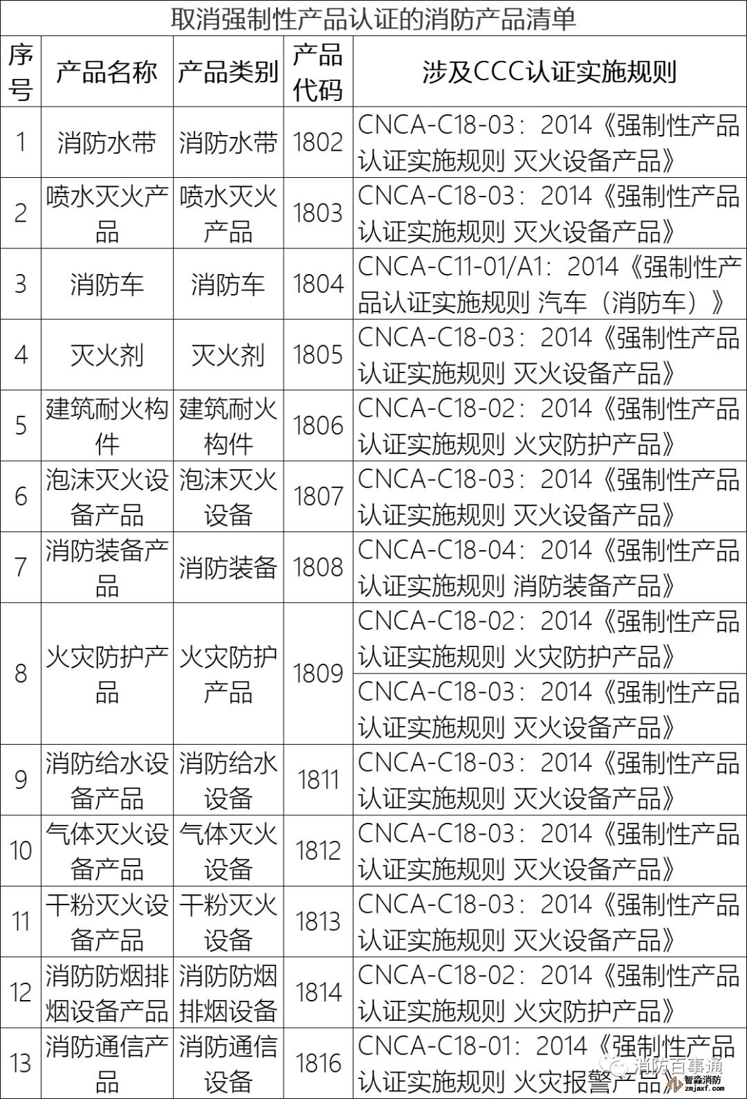 此外,取消火災報警產品(產品代碼1801)中的線型感溫火災探測器產品、消防聯動控制系統產品、防火卷簾控制器產品和城市消防遠程監控產品的強制性產品認證。