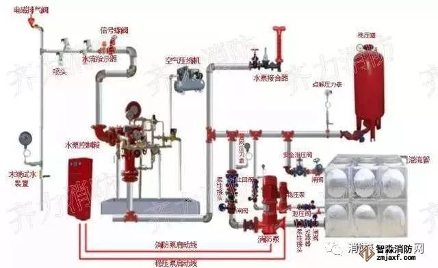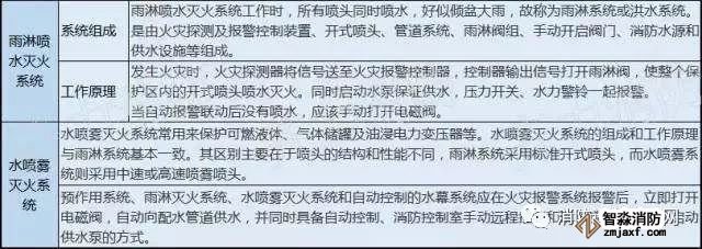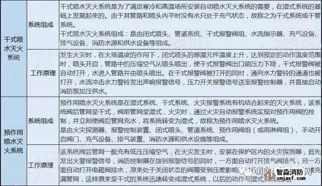 自動噴水滅火系統是一種固定式自動滅火的設施,它自動探測火災,自動控制滅火劑的施放,按照管網上噴頭的開閉形式分為閉式系統和開式系統,閉式自動噴水系統又包括:濕式系統、干式系統、預作用系統、循環系統;開式自動噴水系統也包括:雨淋滅火系統、水幕系統、水噴霧系統。