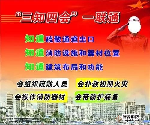 “三知”是指知道消防設施和器材的位置、知道安全通道和出口、知道建筑布局和功能;“四會”是指會疏散逃生、會撲救初期火災、會穿戴防護裝具、會使用消防器材;“一聯(lián)通”是指消防支隊(大中隊)與微型消防站、微型消防站與隊員要保持通信聯(lián)絡暢通。