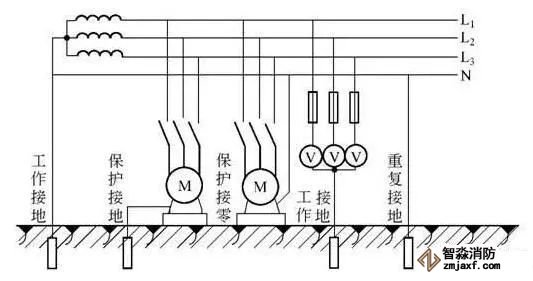 重復(fù)接地就是在中性點直接接地的系統(tǒng)中,在零干線的一處或多處用金屬導(dǎo)線連接接地裝置。