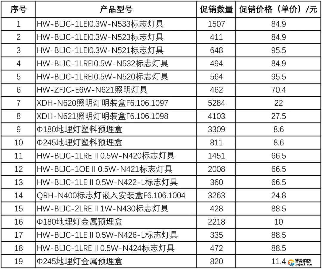 1、活動期間,凡購買下表所列我司智能逃生系列商品,可享受所列商品限時特價促銷優惠(特價商品不與其他優惠活動同時使用)。