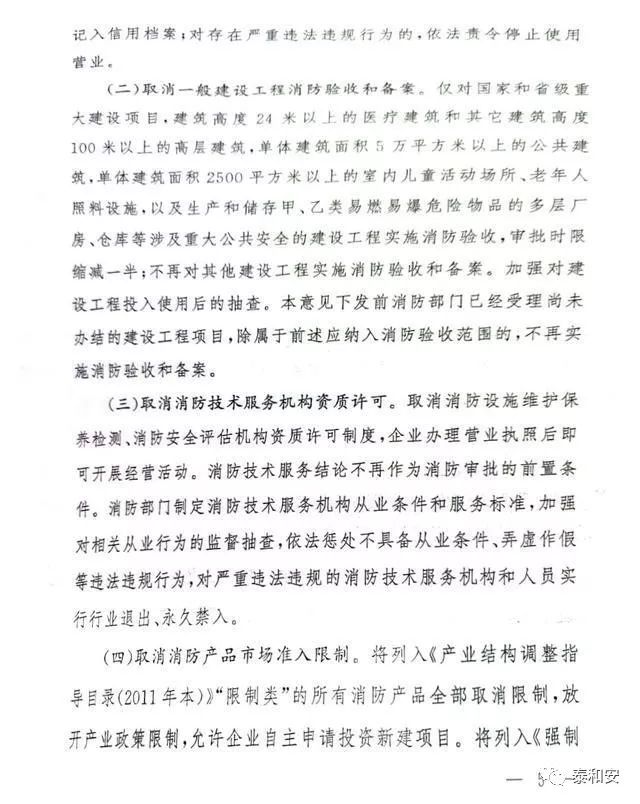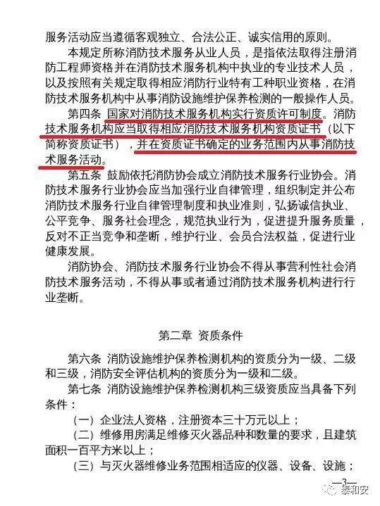 “ 取消消防設施維護保養檢測、消防安全評估機構資質許可制度,企業辦理營業執照后即可開展經營活動。”這是征求意見稿非常重要的一條。