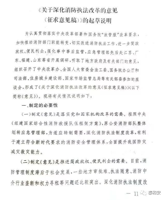 《關于深化消防執法改革的意見(征求意見稿)》的兩頁紙引起行業極大關注!