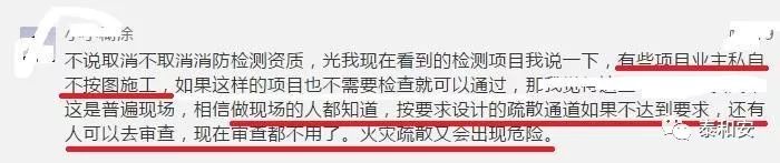 有的人認為,取消機構的資質許可,誰都可以干消防,在今天這個情況下,那很可能造成更多的安全隱患。不是什么樣的機構都可以干消防檢測或維護保養的,這是一個專業的事情,還是需要一定的條件的。征求意見稿提出"......依法懲處不具備從業條件、弄虛作假的違法違規行為,對嚴重違法違規的消防技術服務機構和人員實行行業退出、永久禁入......"