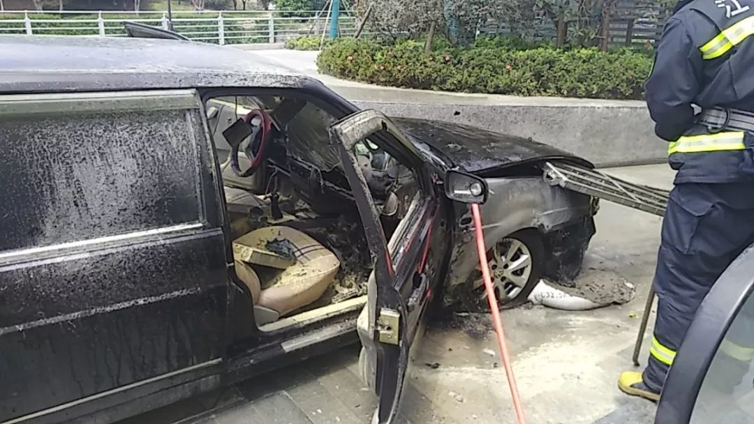 中隊指揮員立即下達任務,一名隊員配合維護好現場秩序,防止對旁邊的圍觀群眾造成傷害。為避免復燃及爆炸危險,滅火組隊員先將發動機蓋撬開,迅速出一支水槍對其進行冷卻降溫。在對事故車輛發動機與前輪胎煙霧進行壓制后,滅火組迅速轉戰駕駛室,對駕駛室內起火點用水槍進行逐個擊破,4分鐘左右,全部起火點全部撲滅后,在確定無復燃可能性后,中隊指揮員將事故現場移交至警方。