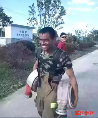 這是溫州蒼南消防戰士張曉方連續撲滅了六場火,在歸隊路上,他露出了開心的笑容。