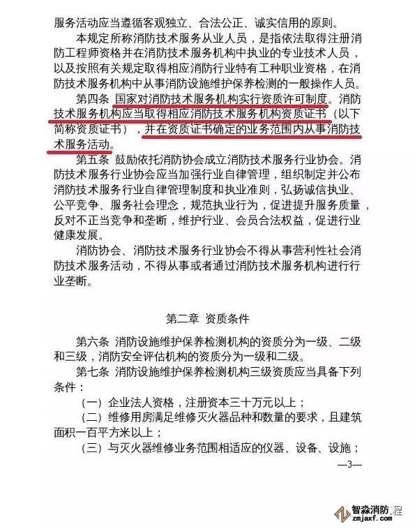 “ 取消消防設施維護保養檢測、消防安全評估機構資質許可制度,企業辦理營業執照后即可開展經營活動。”這是征求意見稿非常重要的一條。