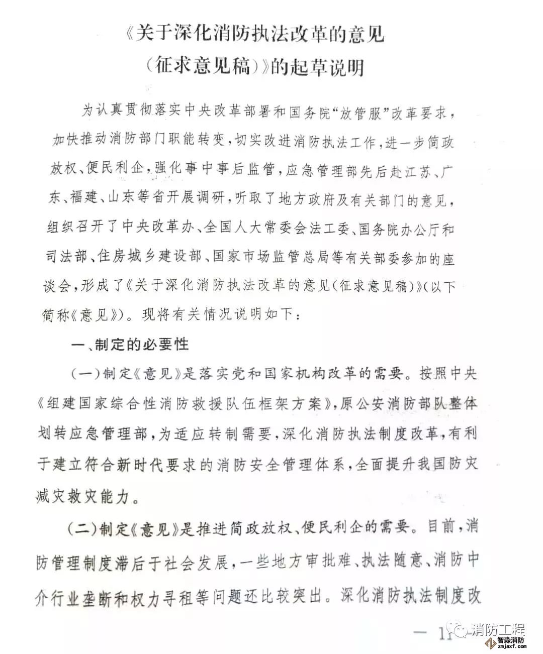 該征求意見稿提出“消防技術服務結論不再作為消防審批的前置條件”。消防審批不是已經劃轉到住建部門了嗎,怎么應急管理部提關于“消防審批”的事情。原來,參加部位座談會的有“中央改革辦......住房城鄉建設部......”。推測:可能在這個會上,征求了住房城鄉建設部關于工程建設的消防審批意見,住建部本著改革的要求,研究同意這個提法(做法)——“消防技術服務結論不再作為消防審批的前置條件”。