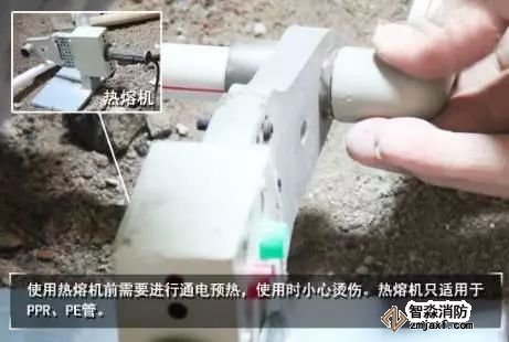 管道鋪設過程中,兩管之間需要進行接管,此時需要使用專業的熱熔機對兩管進行熱熔固定。注意熔管前要在管口用筆畫出熔管長度,管口最好用酒精或者抹布清潔干凈,熔管后要盡快將兩關相接。熔管適用于PPR、PE管,而銅管、PVC管,可使用專用的接頭,PVC管還需要用到PVC膠水進行連接。