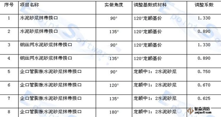企口管的膨脹水泥砂漿接口和石棉水泥接口適于360度,其他接口均是按管座120度和180度列項的。如管座角度不同,按相應(yīng)材質(zhì)的接口做法,以管道接口調(diào)整表進行調(diào)整(見下表):